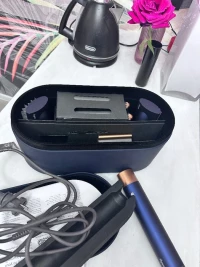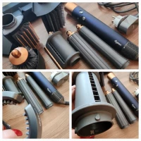 В комплекте со стайлером идет 6 разных насадок: щетки для распутывания и разглаживания прядей, щетка-брашинг, насадка для деликатной сушки и две цилиндрических насадки для локонов. Все это хранится в специальном боксе, удобном для транспортировки.